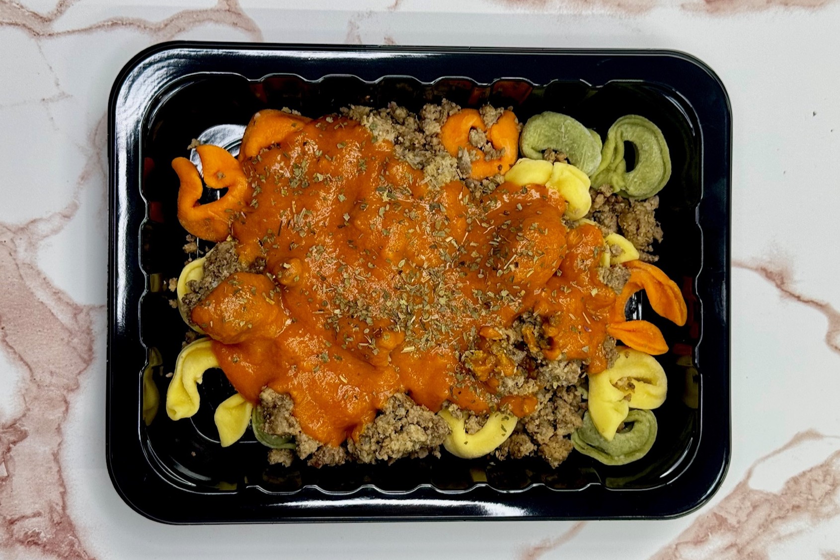 Tri Color Tortellini, Lean Ground Beef, Chipotle Pumpkin Sauce, Basil