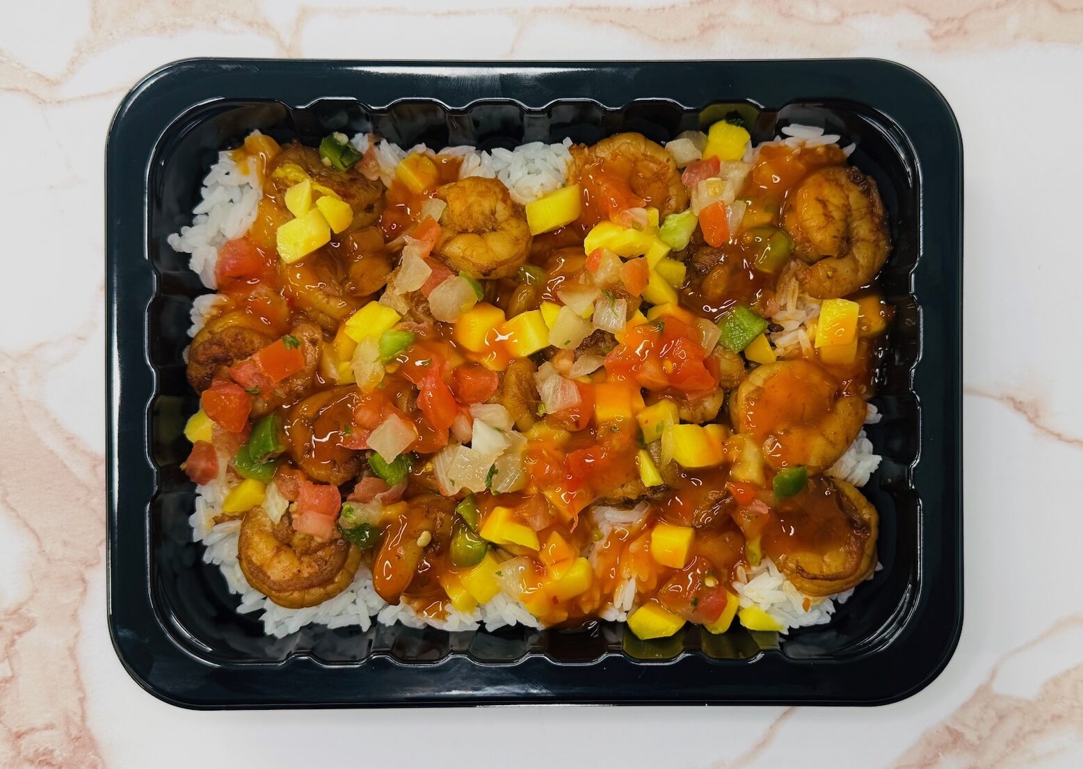 Jasmine Rice, Shrimp, Diced Cucumber, Mango, Pico D Gallo, Mango Habanero Sauce, Coconut Cream
