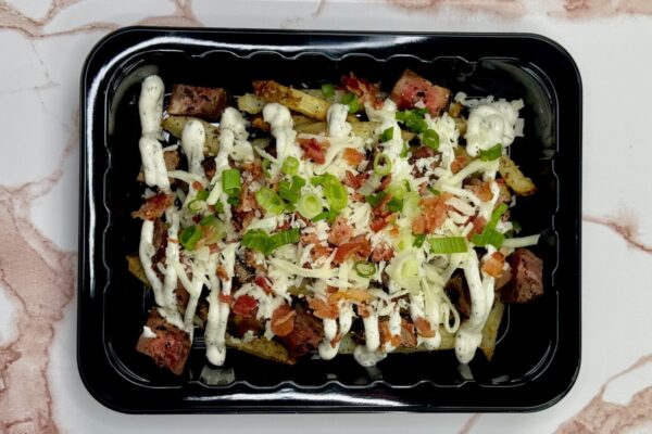 Oven-baked fries topped with juicy flank steak and savory bacon bits, creating a hearty indulgent base. Drizzled with house made ranch dressing and topped with melty shredded queso cheese and fresh green onions, this dish delivers a deliciously satisfying flavor experience in every bite.